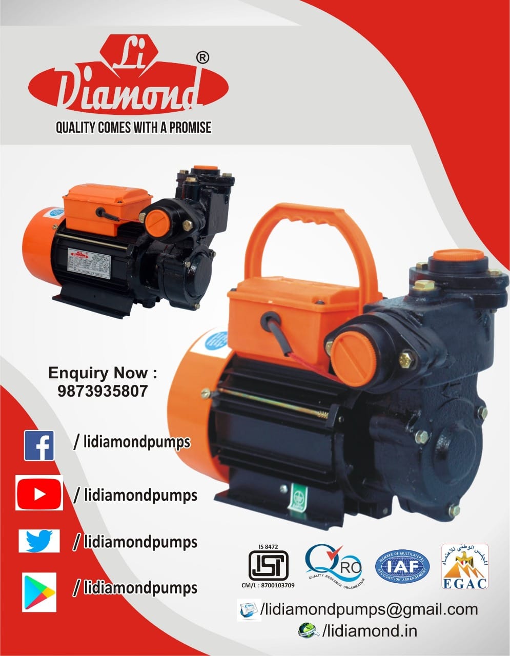 LiDiamond Pumps has been committed to providing superior quality products to every customer over the years. LiDiamond is one of the most trusted brands in water pumps. Our promise to every customer is to be a trusted water transfer solutions provider with the commitment to best product performance power saving